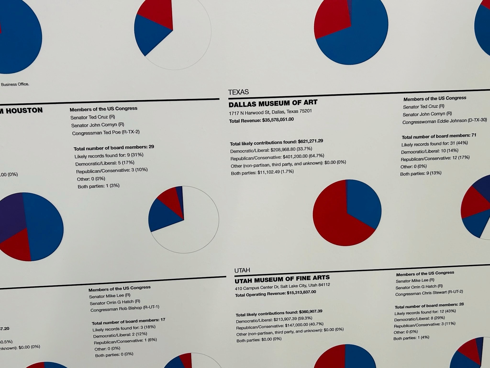 Despite what most people may assume, it wasn’t on my phone or a passing billboard. Nope, it was on the wall of a museum. Actually, it was via a pie chart listing out board members and revenue figures, the kind of data I work with every day, rendered into a careful dashboard and hung at eye level.