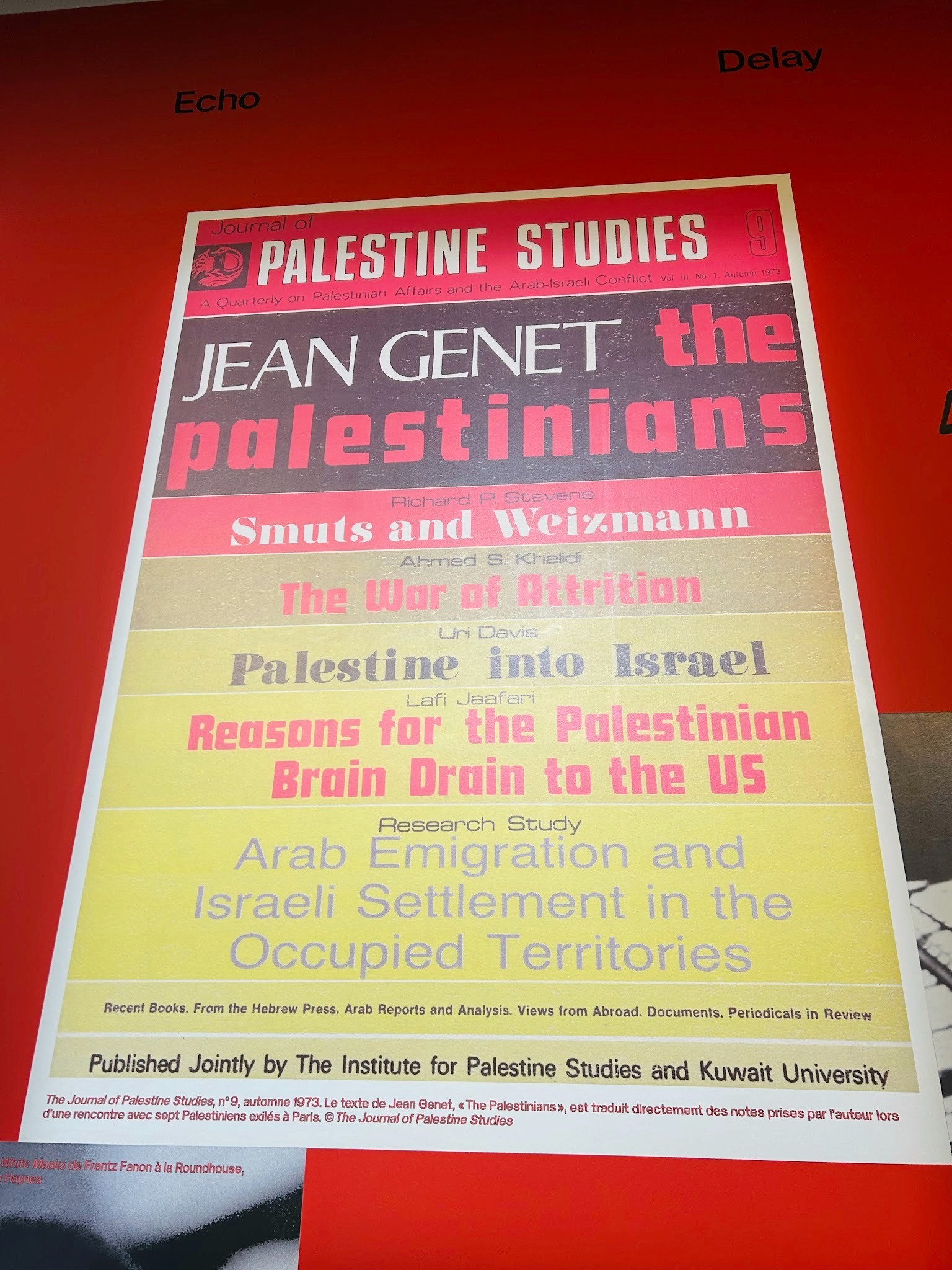 This bit of information was on display at the Palais de Tokyo, at an exhibit called Echo Delay Level (American Art, Francophone Thought).